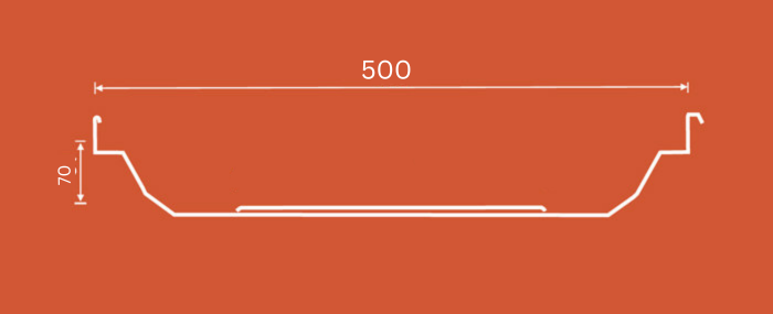 Sigma Roofing System is 360° standing seam roofing solution. The profile is supplied with advanced leak proof features for long serviceability. The effective width of sheet is 500 mm and standing seam height of 70 mm and panel contains cross flute stiffner for strong and sturdy performance. The profile is mechanically sealed with specialized machine which guarantees leak proof roofing with long service life.